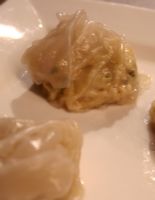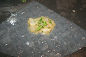 J’avais des crevettes crues, des feuilles de riz, j’ai improvisé, c’est bon, si ce n’est que je n’ai mis qu’une feuille de riz, et il vaut mieux en mettre deux parce que le fond de la bouchée était trop cuit et partait en bouillie. Le jour où j’en refais, je change la photo, promis !
