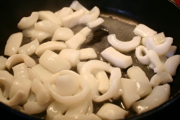 – 500 gr de blancs de calamars (j’ai pris des anneaux en saumure, mais bien entendu, on peut acheter des calamars entiers et les éplucher !)