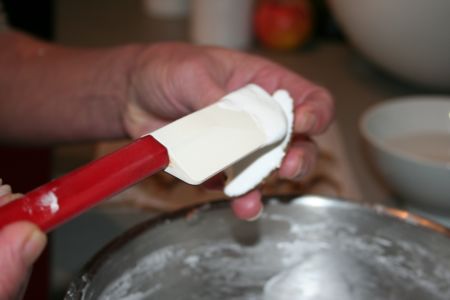 Pour le glaçage, battez le blanc en neige, puis ajoutez-y le sucre glace tamisé, au fur et à mesure, en continuant de battre.