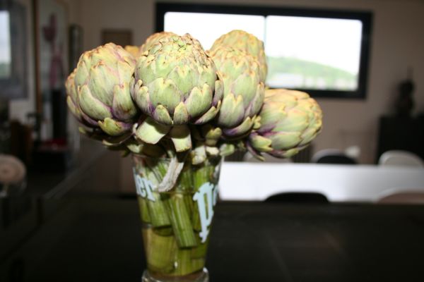 Les petits artichauts au frigo, comme tous les légumes, et ben, c’est pas une bonne idée ! L’artichaut, je veux dire la partie que nous mangeons, est une inflorescence, que l’on récolte avant que la fleur n’apparaisse. Du coup, c’est une sorte de fleur, et le mieux pour la conserver, c’est l’eau dans un vase :