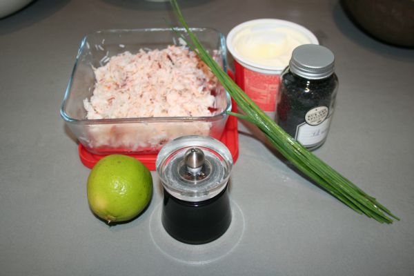 Décortiquez le crabe, ou ouvrez la boîte, selon le choix que vous avez fait… Paresseux ou gourmet ? Pressez la chair pour en extraire l’eau. Mélangez avec le jus du citron, la crème, la ciboulette ciselée, le sel et le poivre, réservez.