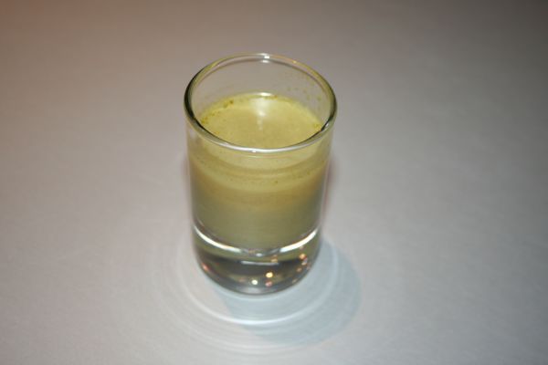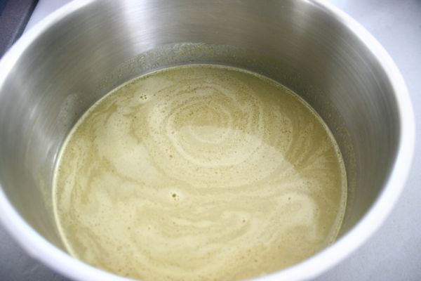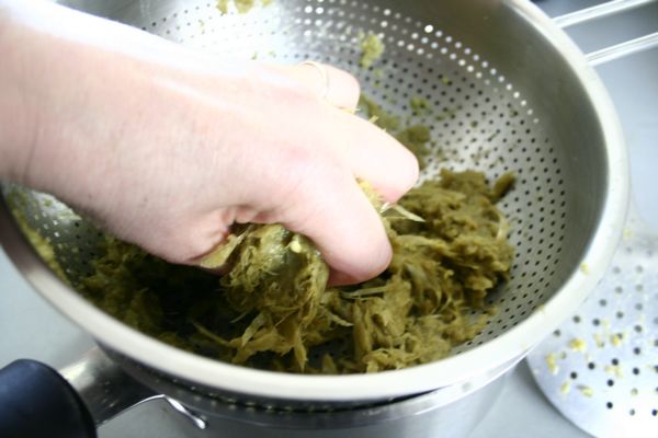 Le blender, c’est vachement bien, mais là, ça ne suffit pas ! Il faut mixer cette soupe, mais comme il y a énormément de fils, vous obtiendrez une purée fibreuse qu’il faut presser pour en extraire le jus.