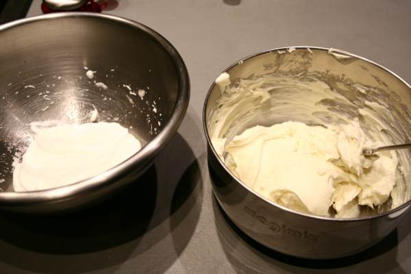 Détendez le mascarpone avec le sucre, puis, pour finir avec les blancs d’oeuf battus en neige. Cela allégera la consistance.