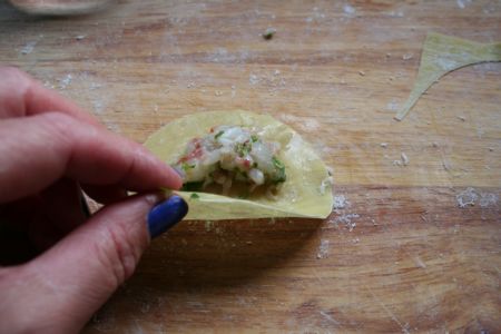 Pour la farce aux crevettes, il ne faut pas faire cuire, la cuisson des dim sun suffira. La préparation de la pâte est un peu délicate, et celle-ci sèche vite, c’est pourquoi vous devrez avoir de la farce prête sous la main, de façon à ne pas perdre de temps. Il y a ensuite plusieurs techniques pour la fabrication, suivant la pâte que vous utilisez et suivant la forme que vous voulez donner à vos dim sum.