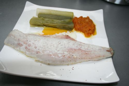 Disposez le bar dans l’assiette, avec une cuillère de clémentines cuites, et, moi, j’ai mis des poireaux vapeur (ben si, ça va très très bien ensemble). Assaisonnez le tout et, avant de servir, débarrassez le lait du zeste, et fouettez le pour obtenir la bonne moumousse (je sais, c’est pas facile) sur le dessus, que vous prélèverez à la cuillère pour en recouvrir le filet de bar.