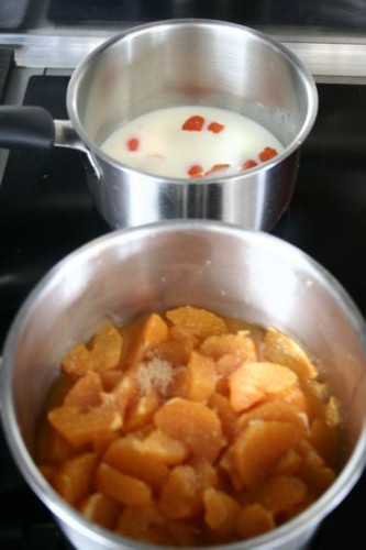 Dans le même temps, faîtes infuser le zeste de clémentine dans le lait, en laissant chauffer à feu moyen pendant 10 min.