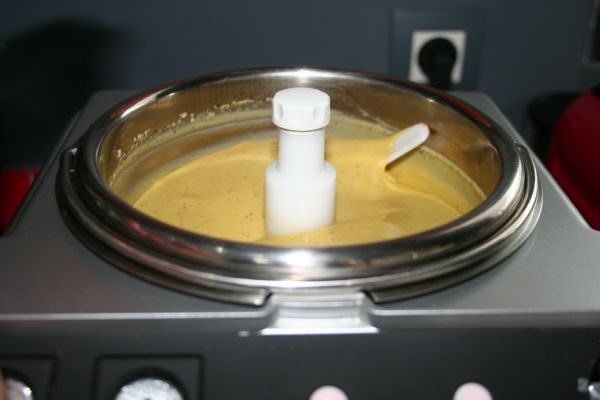 Mon dieu quel bonheur, mon dieu quel bonheur, d’avoir un mari bricoleur.. une turbine à glace ! Si vous n’en avez pas, on peut faire ça en sorbetière, moins onéreuse à l’achat. Mais si vous aimez les glaces, ça vaut la peine d’investir !