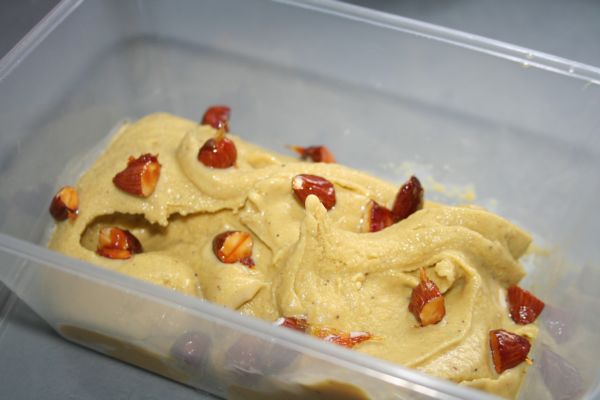 Quand la turbine a fini de turbiner, incorporez les amandes à la glace et un petit passage au congélateur. Les gourmands et les impatients la mangeront tout de suite, encore crémeuse, à l’Italienne ! slurp ! ET QUE PERSONNE NE ME PARLE DE COLORANT VERT, s’il vous plaît !