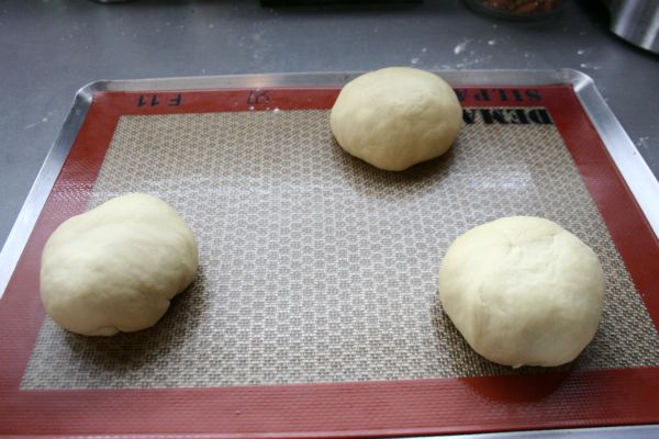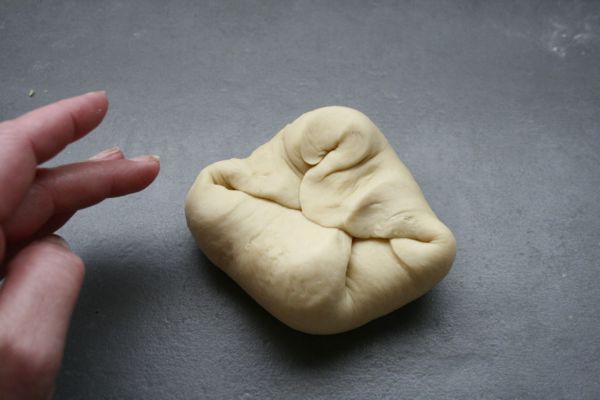 Retournez, pour que les pointes soient dessous, cela doit éviter aux petits pains de trop s’étaler. Formez de jolies petites boules. Posez les sur une plaque, couvrez d’un linge propre, et laissez lever 2 heures.