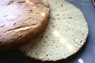 « Dégasez » le pâton, qui a du bien gonfler (si ce n’est pas le cas, c’est raté). Vous pouvez à ce moment-là en prélever une partie que vous reformerez à votre guise, pour la brioche en rab. Ou bien vous choisissez de préparer un disque sur un support adapté (papier cuisson sur la plaque du four, par exemple), ou bien vous beurrez un moule à manqué dans lequel vous installez votre pâte bien confortablement. Et vous laissez gonfler encore une heure, dans les mêmes conditions que précédemment.