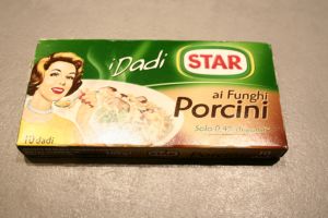 – 1 litre de bouillon (mon secret, c’est le bouillon de cèpes, photo ci-contre, on n’en trouve que dans le nord de l’italie, et depuis peu, sur internet, Amazon UK))