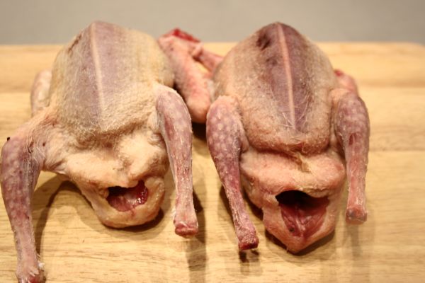 Commencez par passer les bébêtes au chalumeau, vite fait, histoire de brûler les morceaux de plumes qui restent sur la peau.