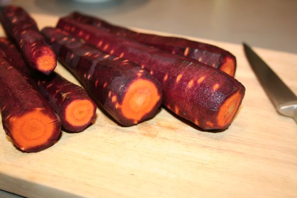 Faîtes cuire vos carottes de la façon suivante : revenues dans un mélange beurre / huile, salées, mouillées d’une louche du jus de cuisson des carcasses ; cuisson à feu doux, à couvert, pendant 1/4 d’h. Réservez et réchauffez vite fait avant de servir.