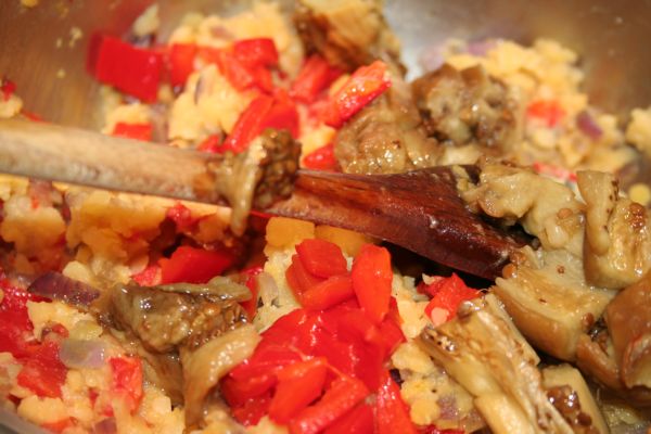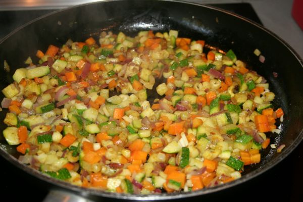 - Laver, éplucher, couper les légumes en petits morceaux. les faire cuire à la poêle dans du beurre clarifié, avec un peu d’huile, éventuellement. Les assaisonner avec le sel et les épices. Lorsque c’est cuit, mélanger ces légumes avec les lentilles cuites. Procéder de la même manière avec la viande, à mélanger à la pomme de terre coupée en petits morceaux.