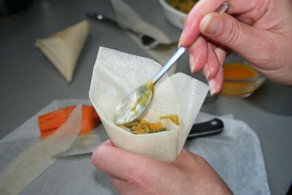 Une recette indienne, déclinée dans tous les coins du monde, suivant les épices et la farce qu’on choisira… Il suffit d’avoir des feuilles de brick… Sur les photos ci-dessous, j’ai utilisé des feuilles rondes, mais c’est plus facile avec des feuilles rectangulaires, un peu plus difficiles à trouver dans nos contrées. Ne vous laissez pas rebuter par la longueur de la recette, c’est beaucoup plus facile à faire que ça n’en a l’air.