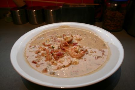 – env 1 kg de crevettes crues (fraîches ou décongelées, plus facile)