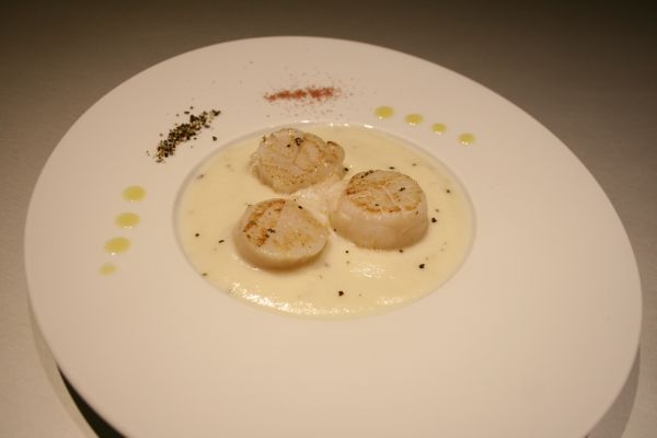 Dressez les assiettes en déposant délicatement 3 cuil. à soupe de crème de st-Jacques au fond de l’assiette, et en y posant ensuite les coquilles cuites. décorez les assiettes avec le reste du poivre concassé, le sel, et quelques gouttes d’huile d’olive. Régalez-vous, c’est un délice !