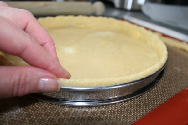 Etaler la pâte dans le moule ou le cercle. Remplir de papier alu ou cuisson, recouvrir de plombs (ou haricots, gros sel…) pour cuire à blanc, 20 min à 170°C.