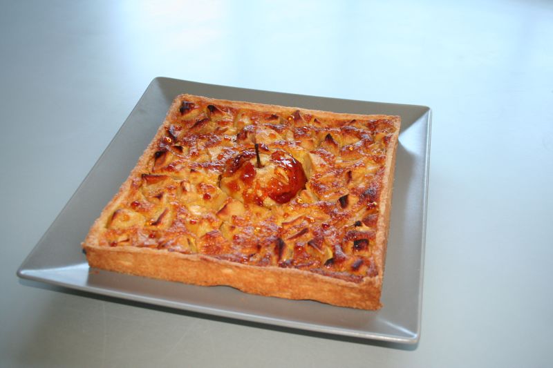 Après plusieurs tests, pâte feuilletée, pâte sablée, gros morceaux de pommes, lamelles, petits morceaux, etc…